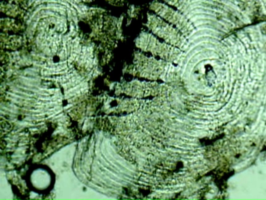 In this video, you can notice the pattern of concentric rings (called annuli), resembling those of tree trunks, of three scales belonging to a Melanotaenia praecox fish.