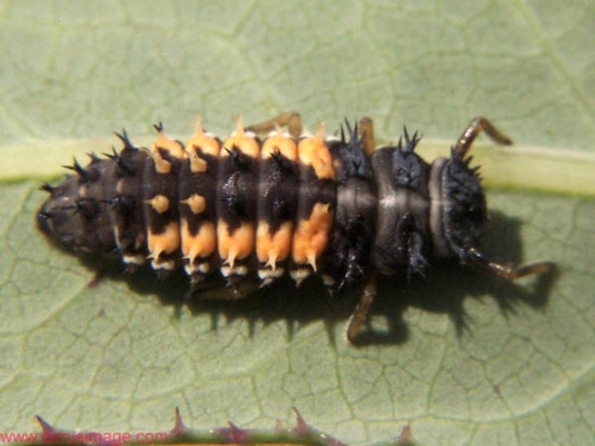 The ladybugs lay in the aphids' colonies (insects that harm the plants) between 10 and 50 eggs from which the larvae emerge after 3-4 days. While an adult ladybug eats around 75 aphids a day, a larva cand eat over 350. The larvae turn into pupae over 3 months. In these pupae they develop for another week until they reach adulthood, thus becoming an imago (an adult).